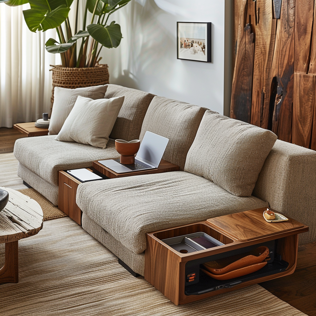 To truly maximize space, look for sofas that offer more than just a place to sit. Some models come with adjustable backs that can be rearranged to create extra sleeping space, or with tables and charging stations built into their frames, merging convenience with functionality.