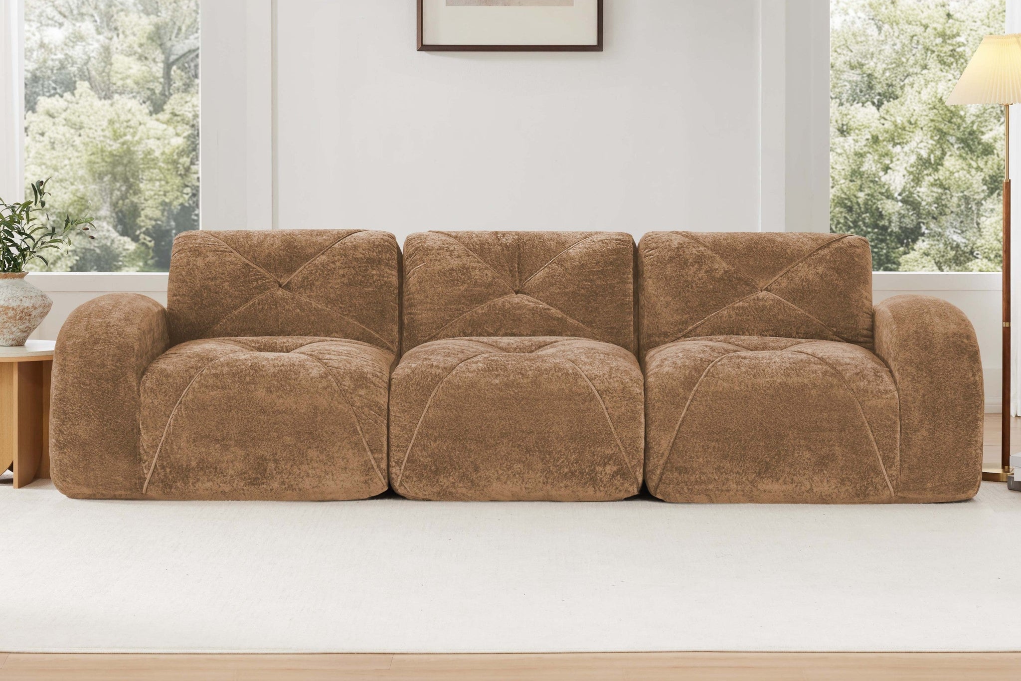 Tufted velvet adds a premium look. No assembly—just unpack MYLO and enjoy instant comfort and versatile modular seating.
