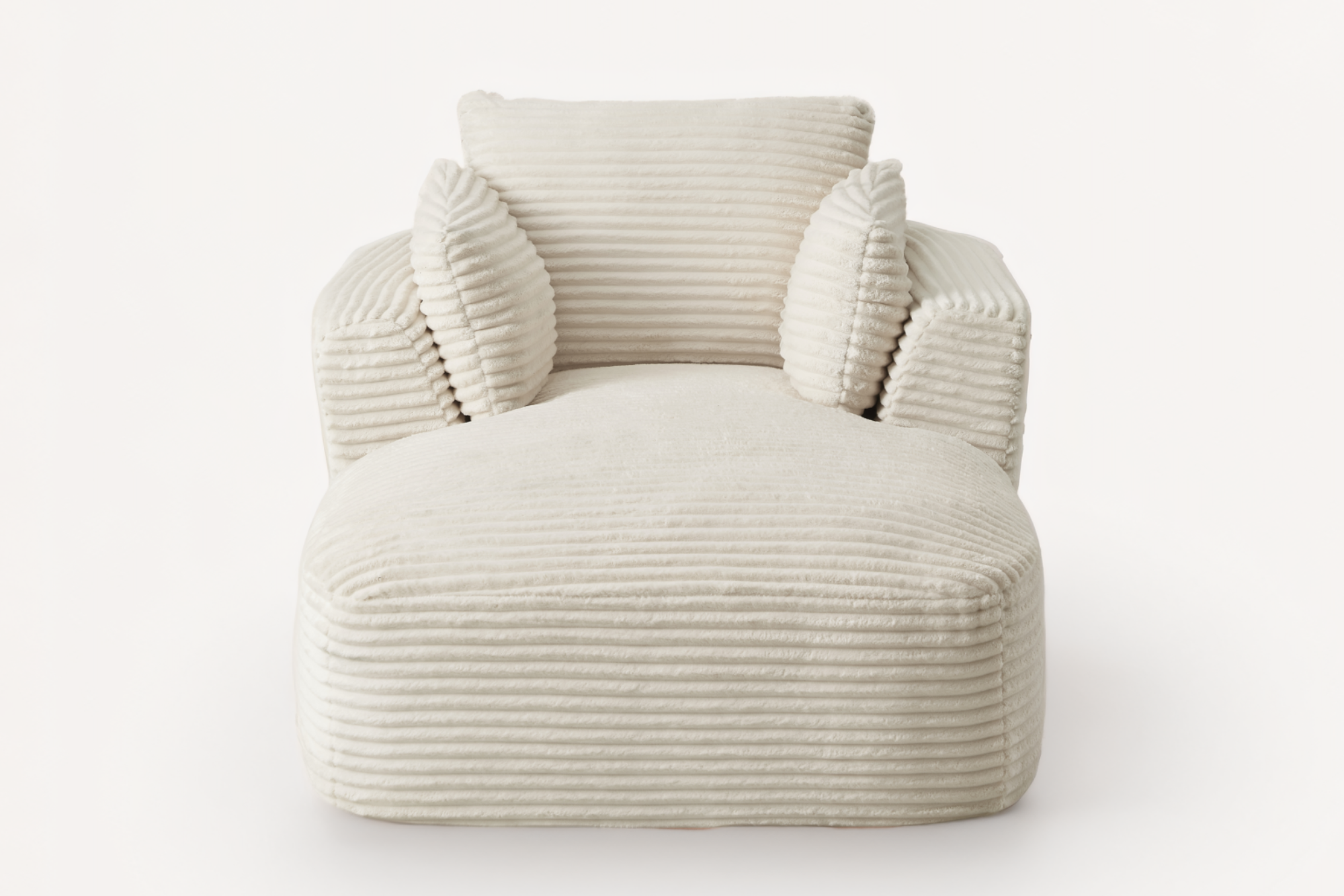 The Comfy Alara Chair excels with its plush corduroy, superior spring support, and chic design, setting it apart from others. Experience unmatched comfort and style without compromising durability.