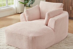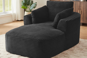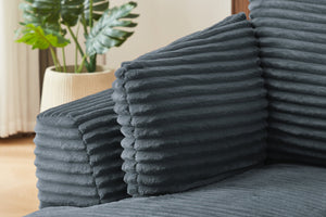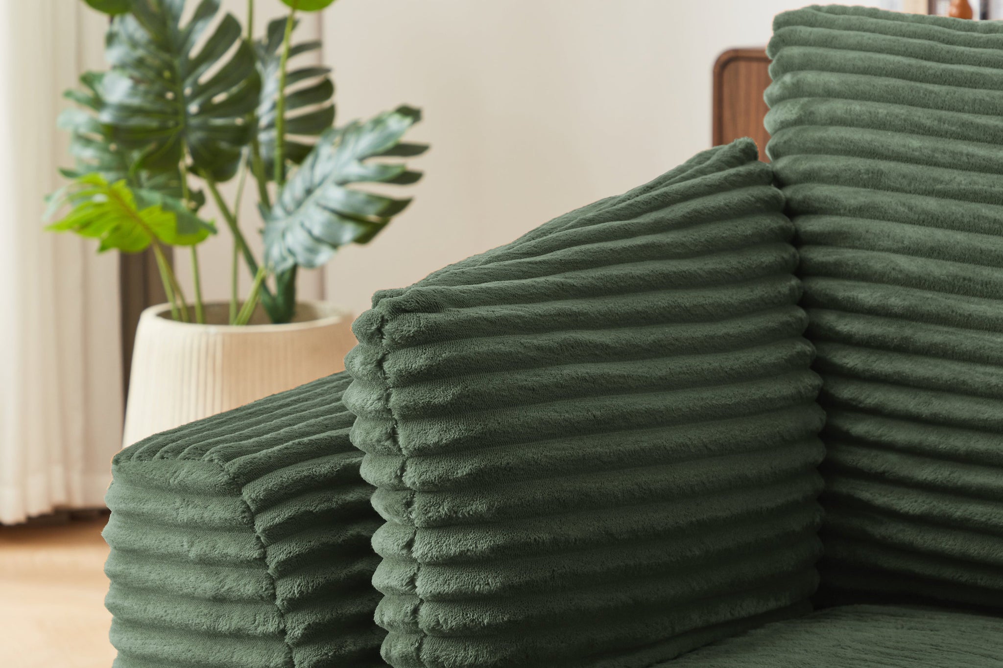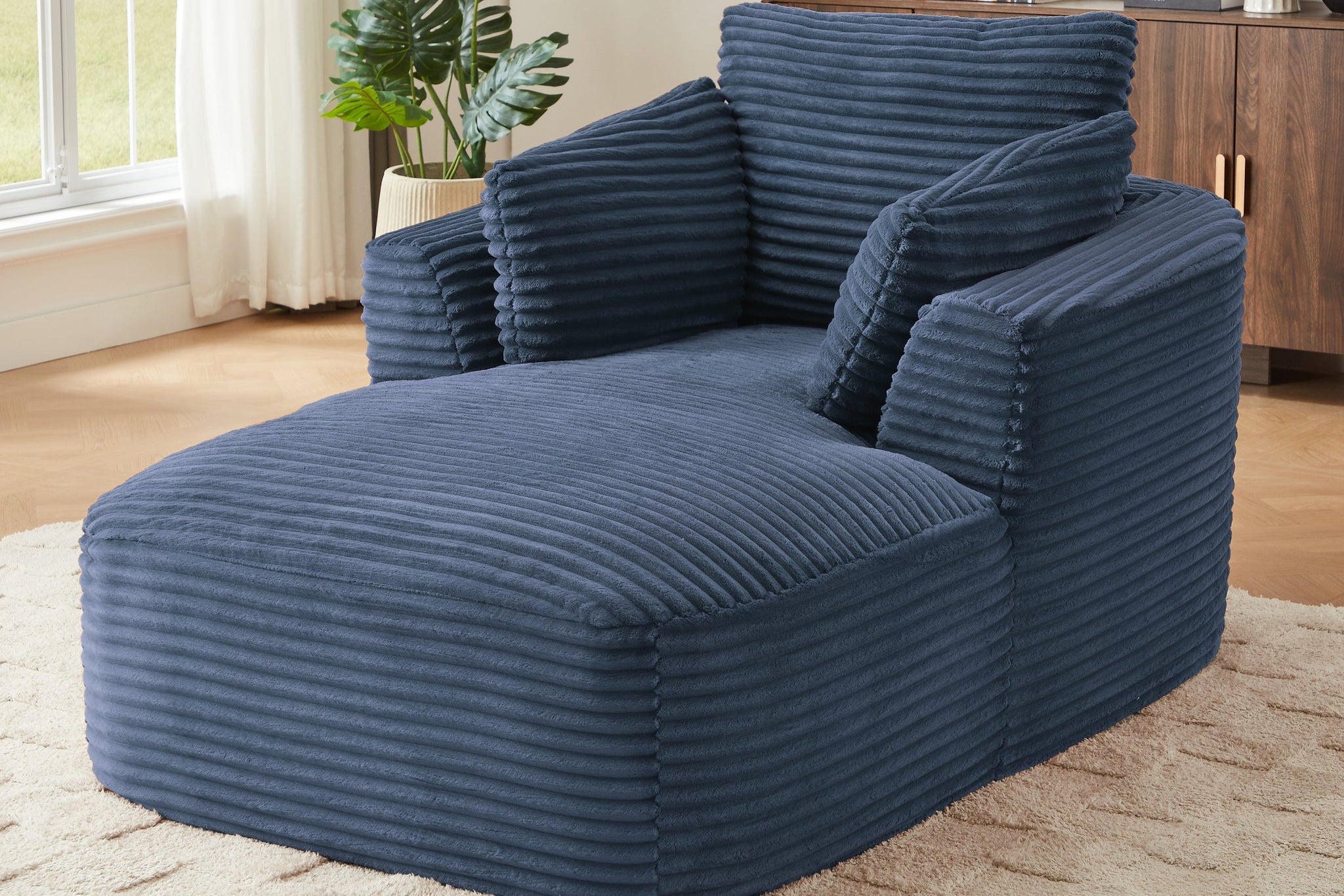 The chair features soft corduroy fabric and a spring cushion, providing plush comfort and excellent support for extended relaxation.