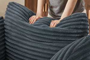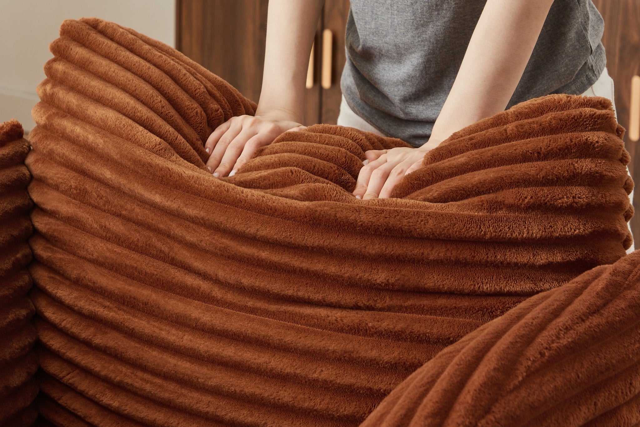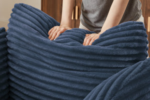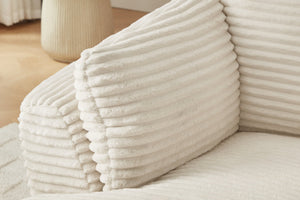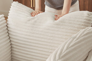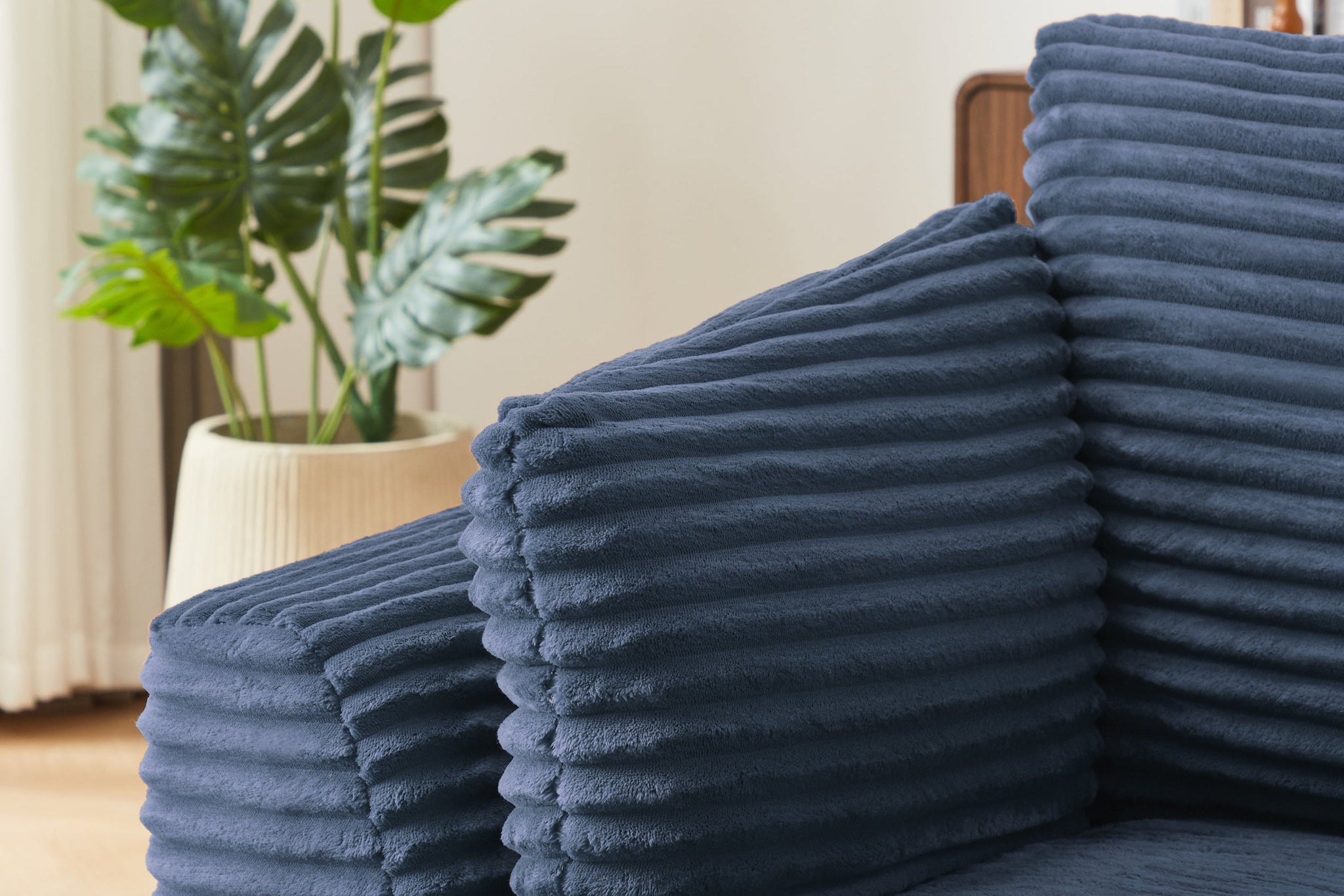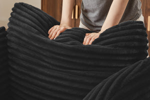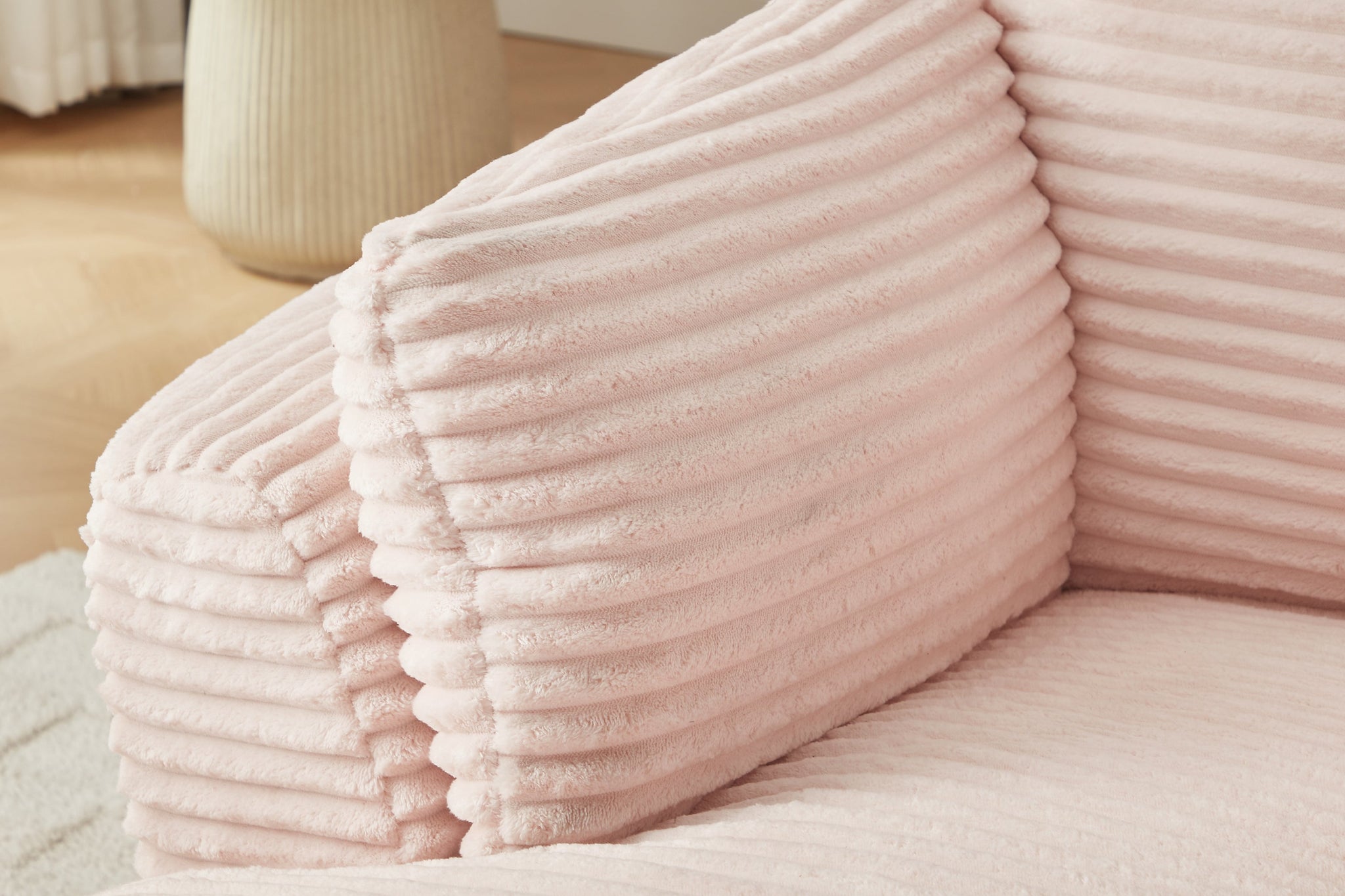 This image highlights the Alara Chair’s plush, ribbed texture that feels incredibly soft to the touch. Its cozy design adds warmth and style to any room, giving you instant comfort the moment you sit.