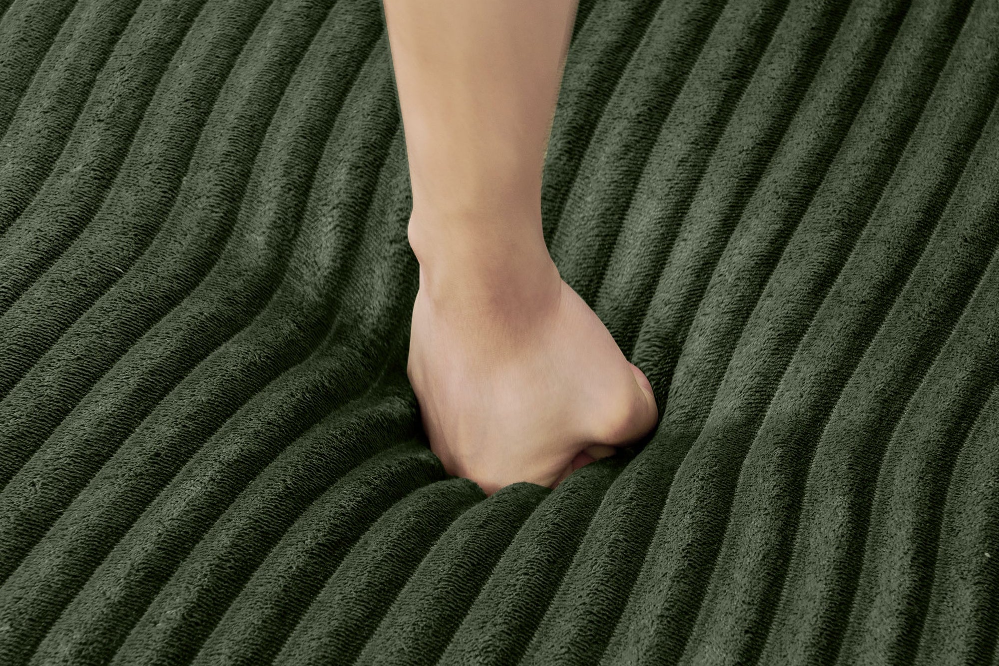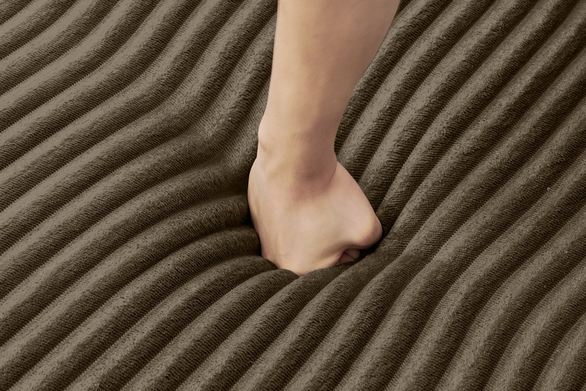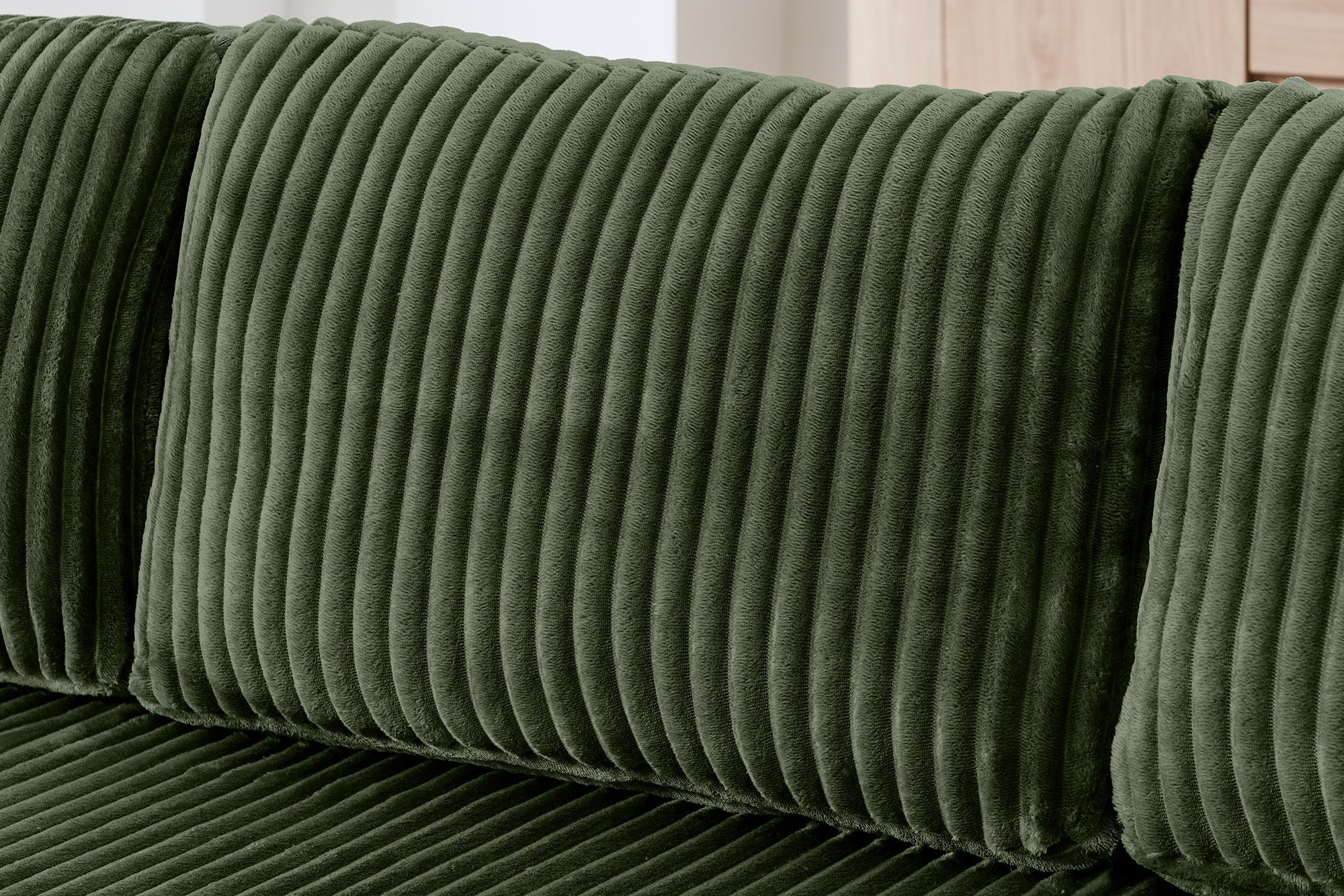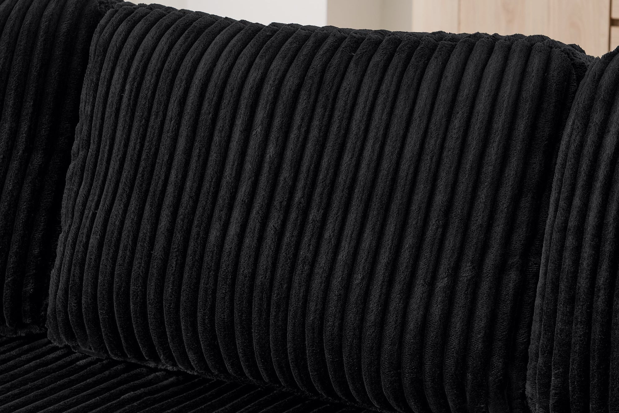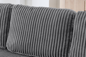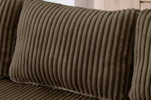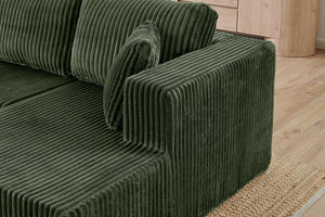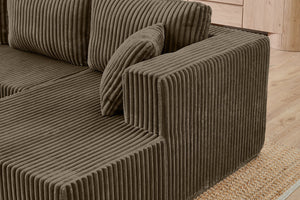 The MORNO Sofa features luxurious terrycloth fabric, providing a soft and cozy feel that enhances comfort.