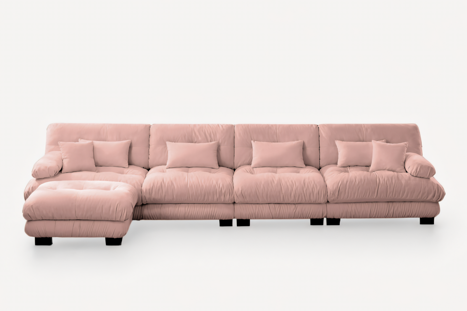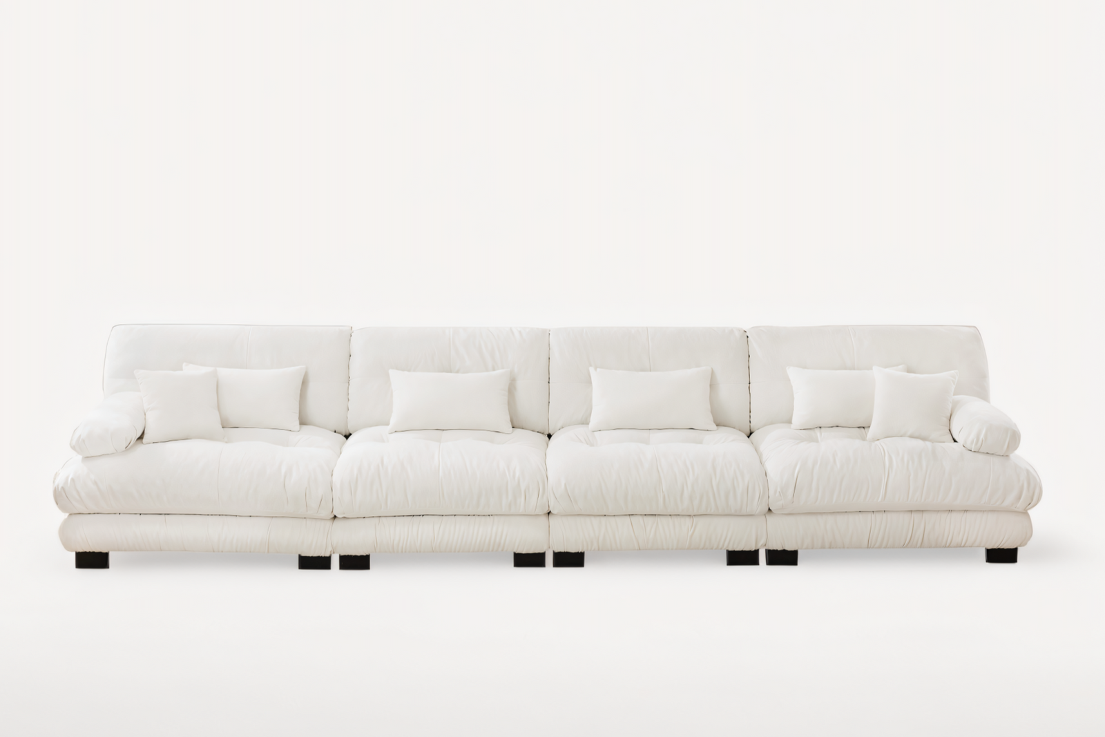 Designed for deep relaxation, the Cloudies Sofa features plush, overstuffed cushions that offer a cloud-like feel. Its wide seating and soft upholstery create an inviting space to unwind. Every detail is crafted for all-day comfort, making it your go-to spot for rest, reading, or conversation.