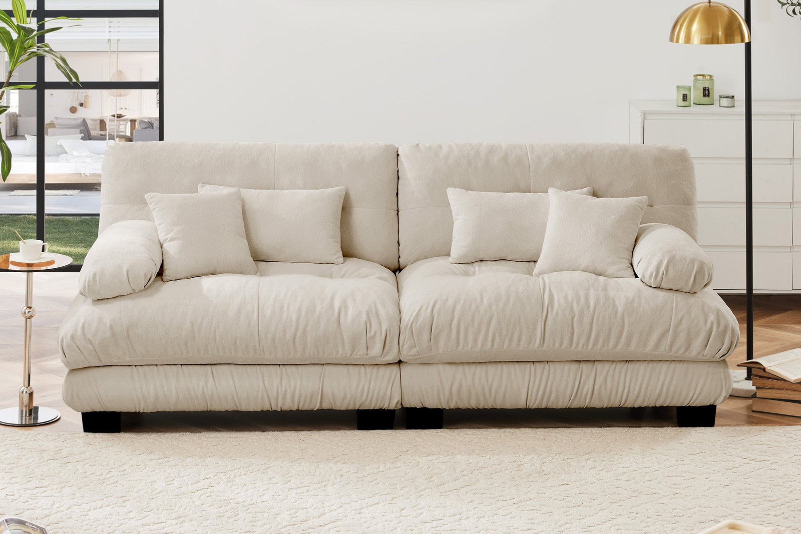 The Cloudies Sofa blends sculpted softness with sophisticated styling. Its plush, ruched cushions and pillow-like seating deliver an ultra-cozy lounging experience. Low-slung with clean lines and deep seating, it creates a relaxed yet elevated vibe. Designed to anchor any space, it brings modern charm and inviting comfort in perfect harmony.