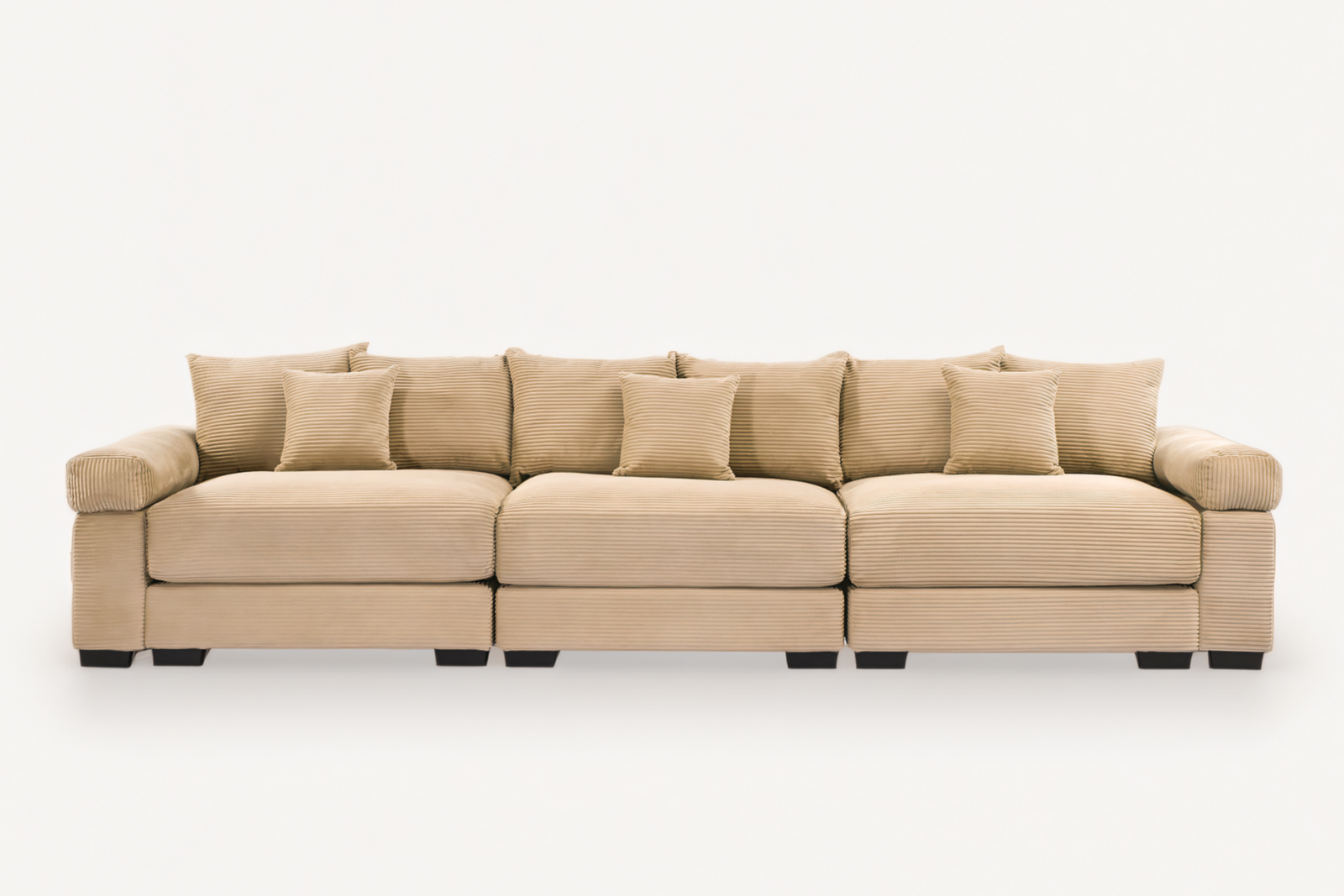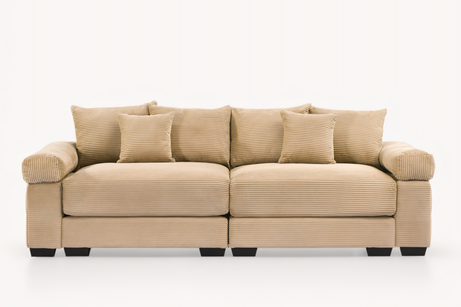 Built on a durable solid wood frame and wrapped in luxurious ribbed upholstery, the DESEO Sofa is made to endure both time and trends. From its reinforced structure to its ultra-resilient cushions, every inch is thoughtfully crafted for everyday comfort and long-term support. Precision stitching and high-quality materials reflect a commitment to quality you can feel—and see—with every touch.