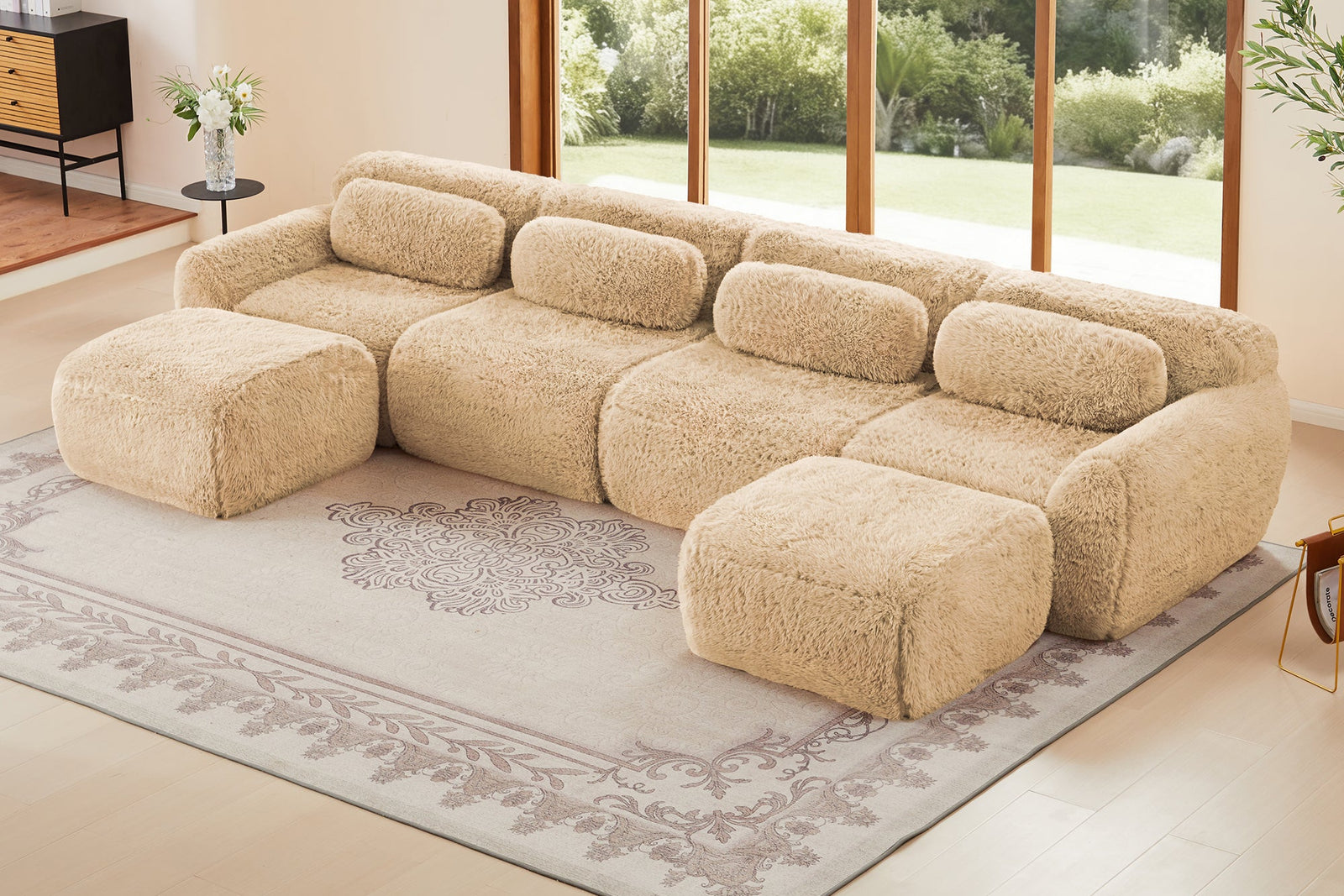 MELLOW Modular Sofa features plush, high-resilience cushions and wide seating with soft, durable fabric, delivering lasting support and style for relaxing, reading, or enjoying time with family.