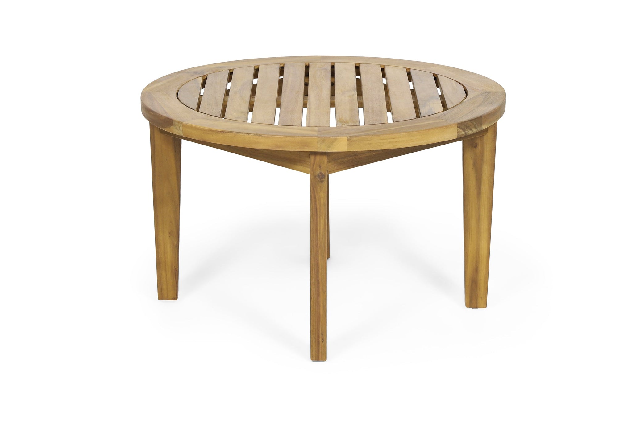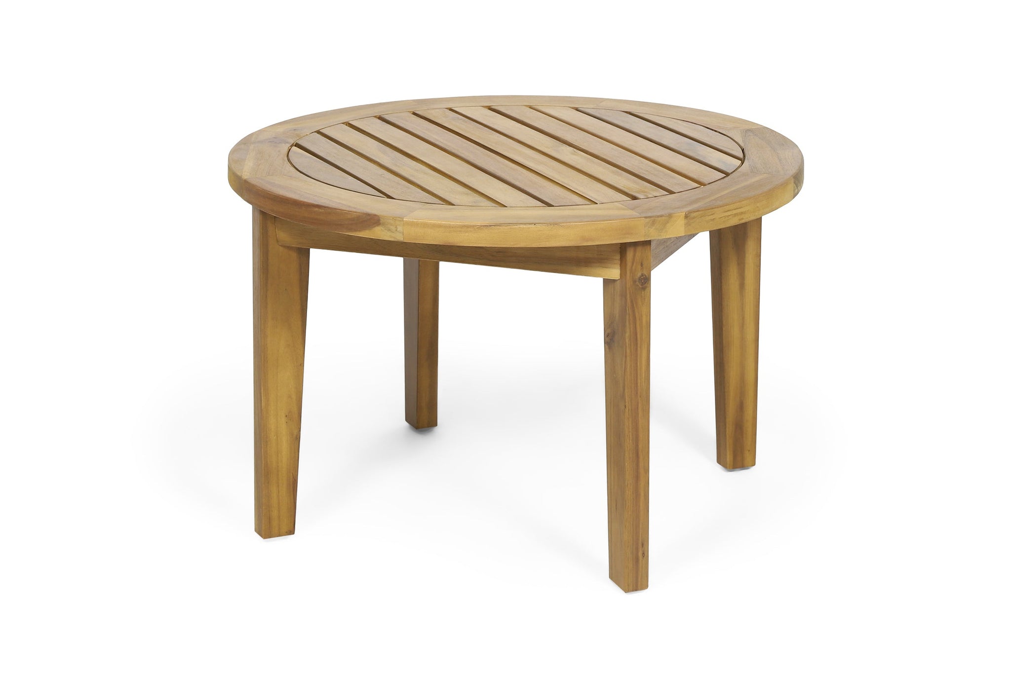The slatted top and sturdy tapered legs make this round solid wood table stable and space-saving, keeping drinks, books, or devices secure while you unwind outdoors.