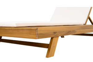 Stylish Outdoor Chaise with Teak Finish and Quick-Dry Cushion