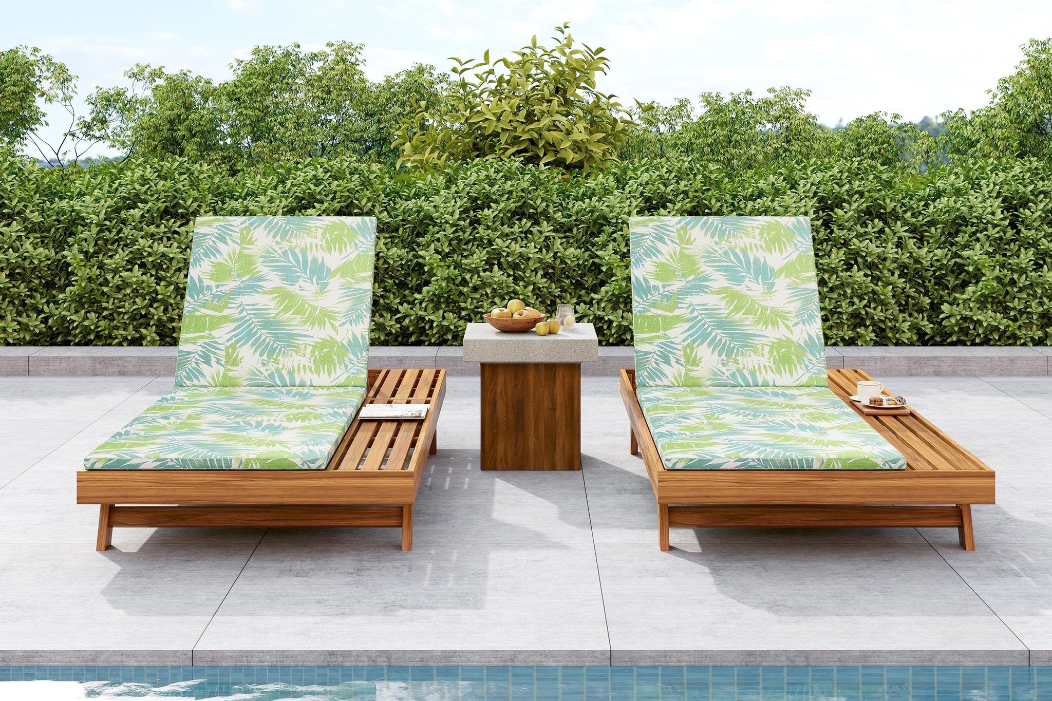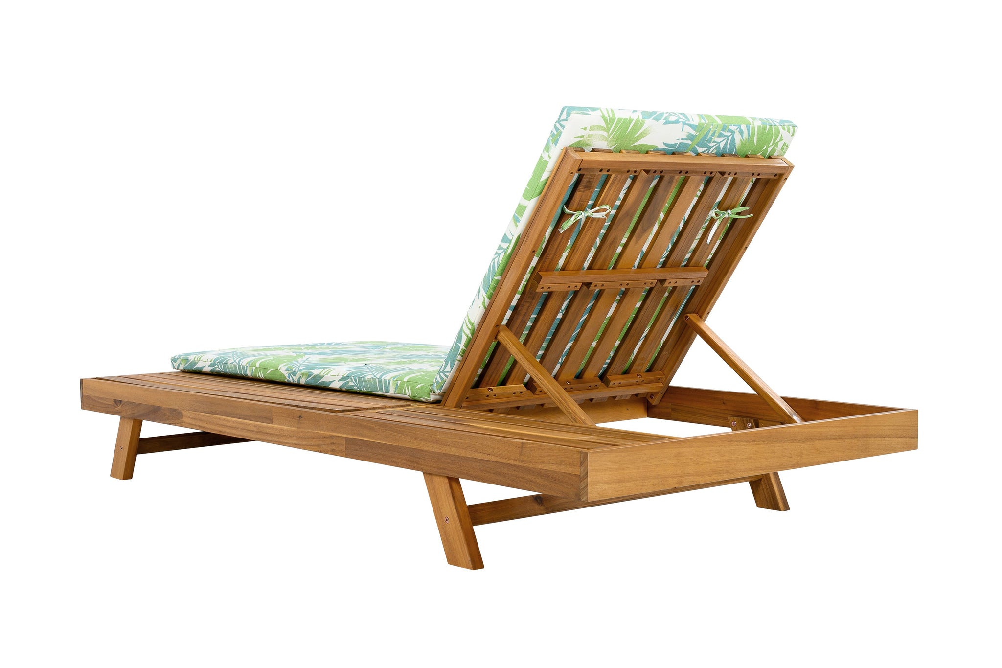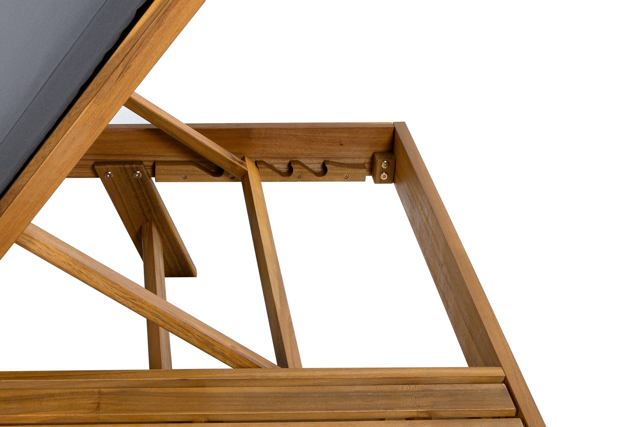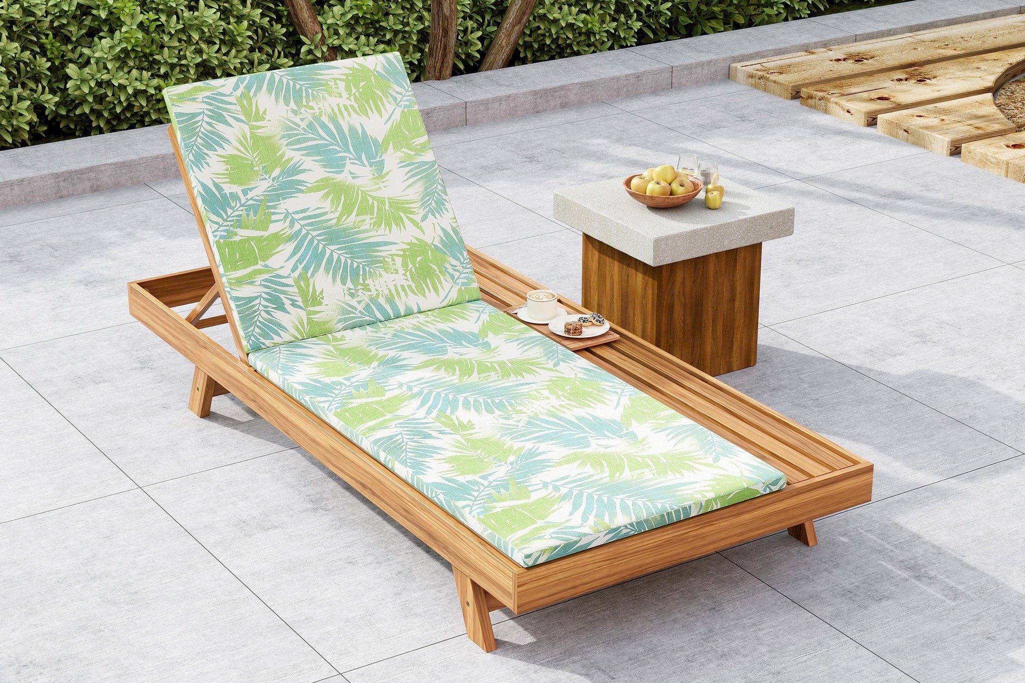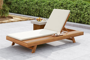 Acacia wood with a rich teak finish, adjustable recline, and breathable slats pairs with a water-resistant cushion for a durable, elegant outdoor lounge.