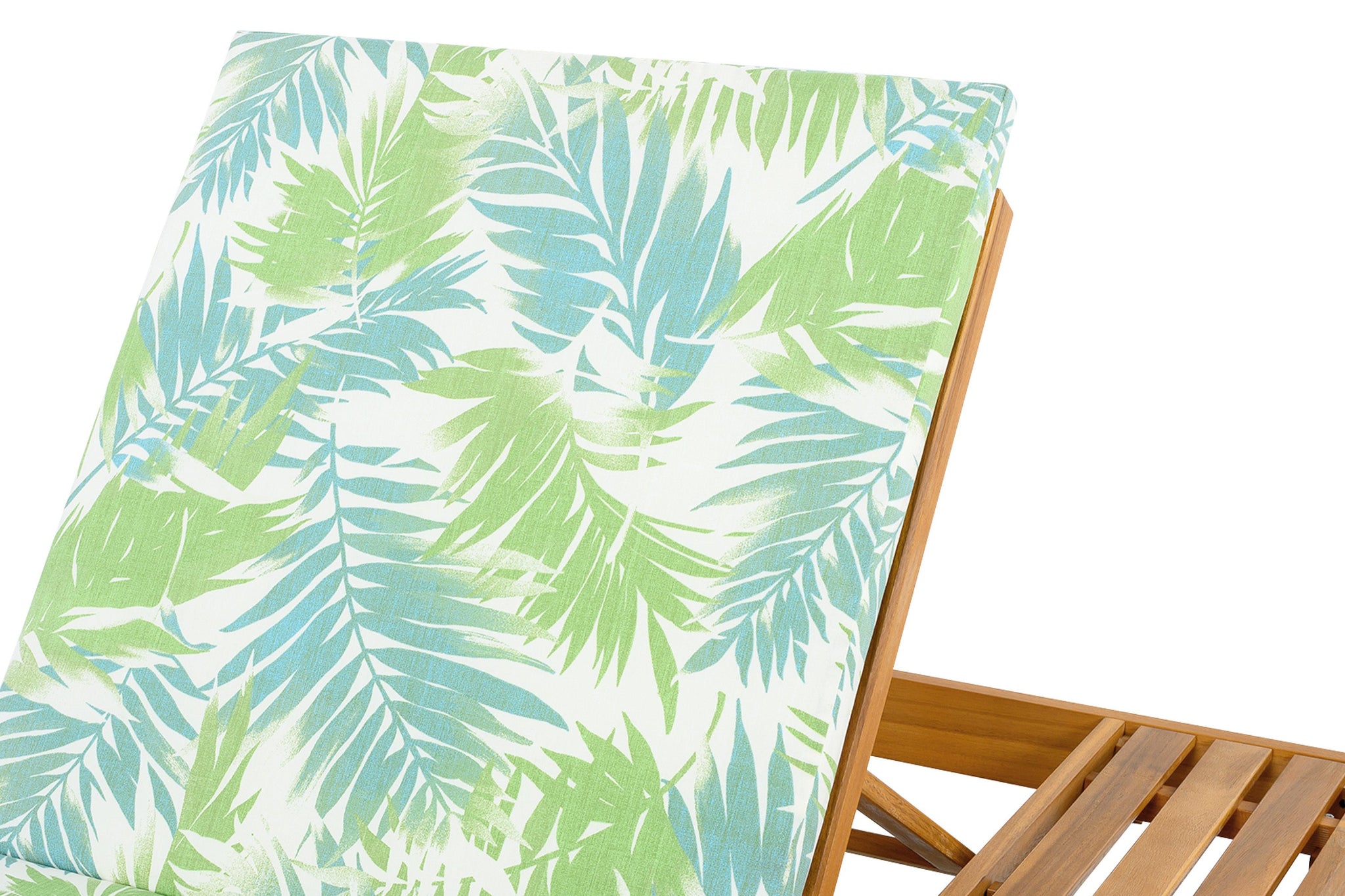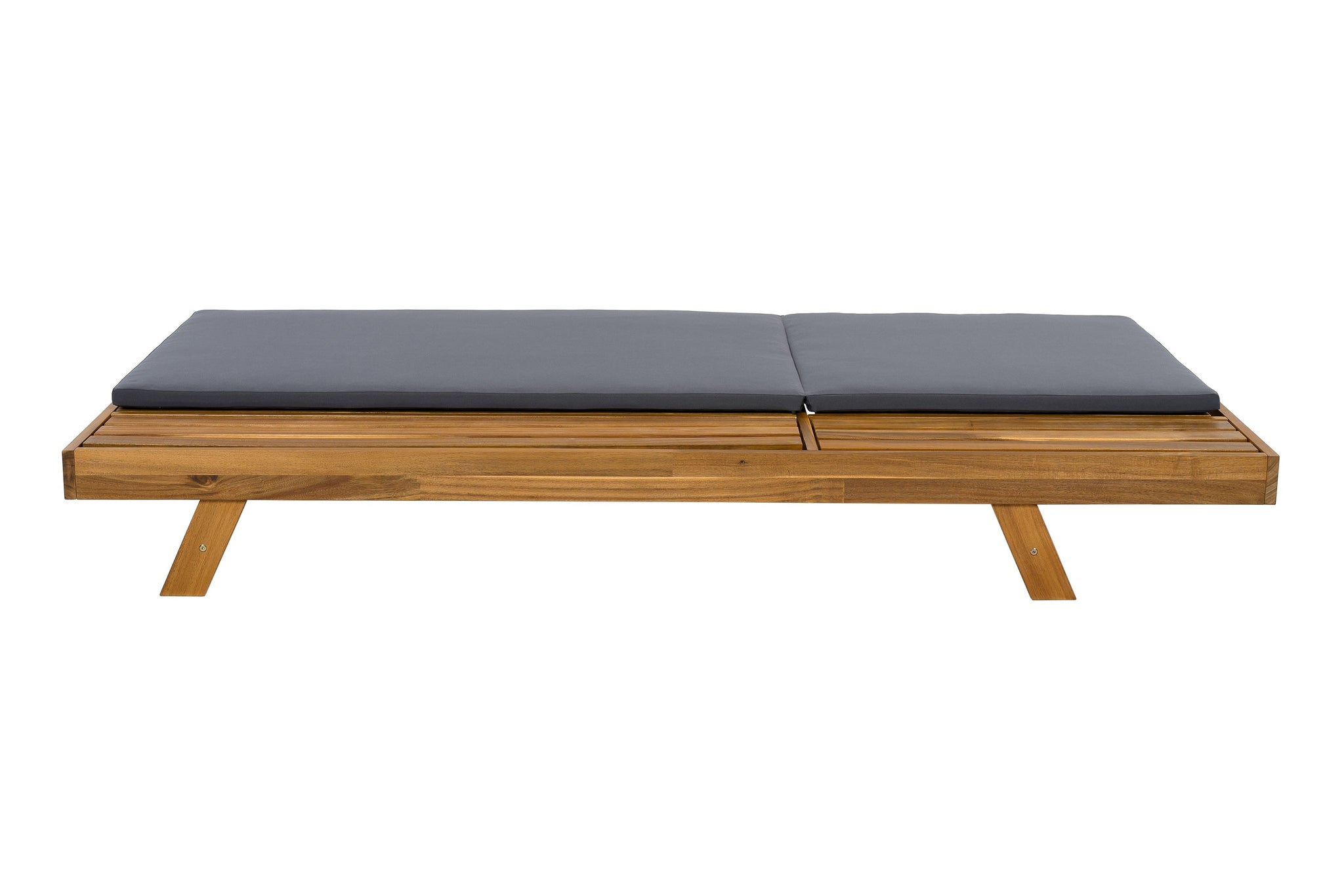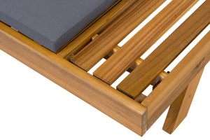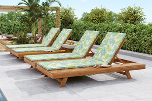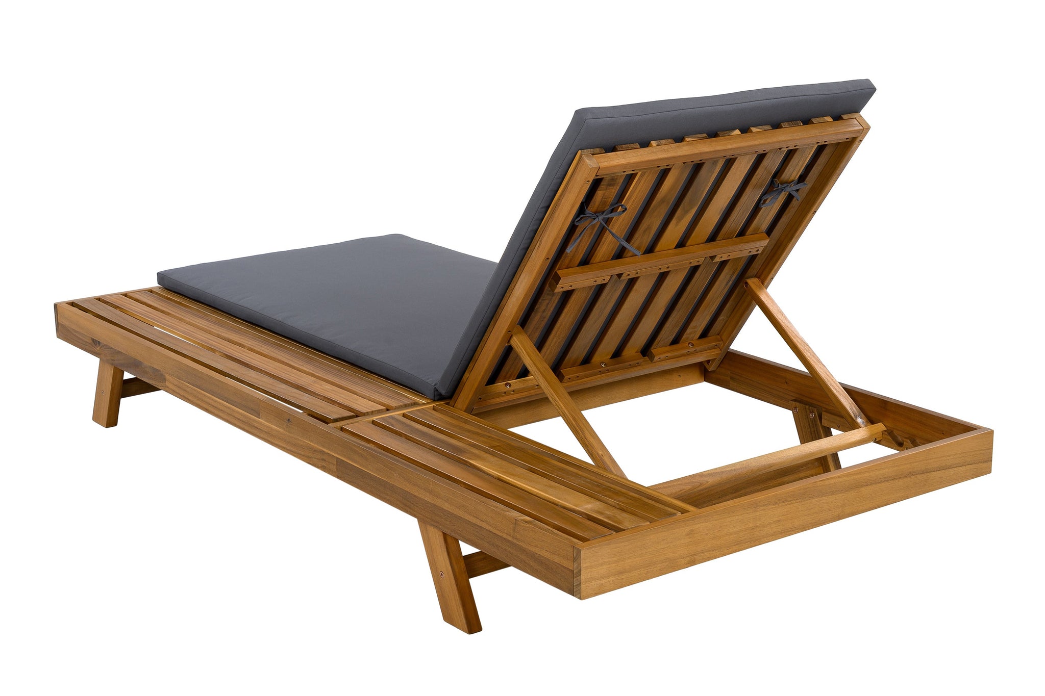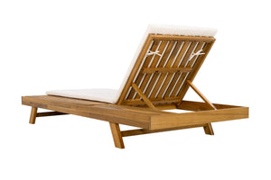 Acacia wood with a rich teak finish, adjustable recline, and breathable slats pairs with a water-resistant cushion for a durable, elegant outdoor lounge.