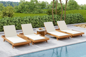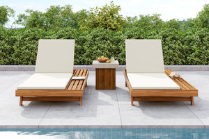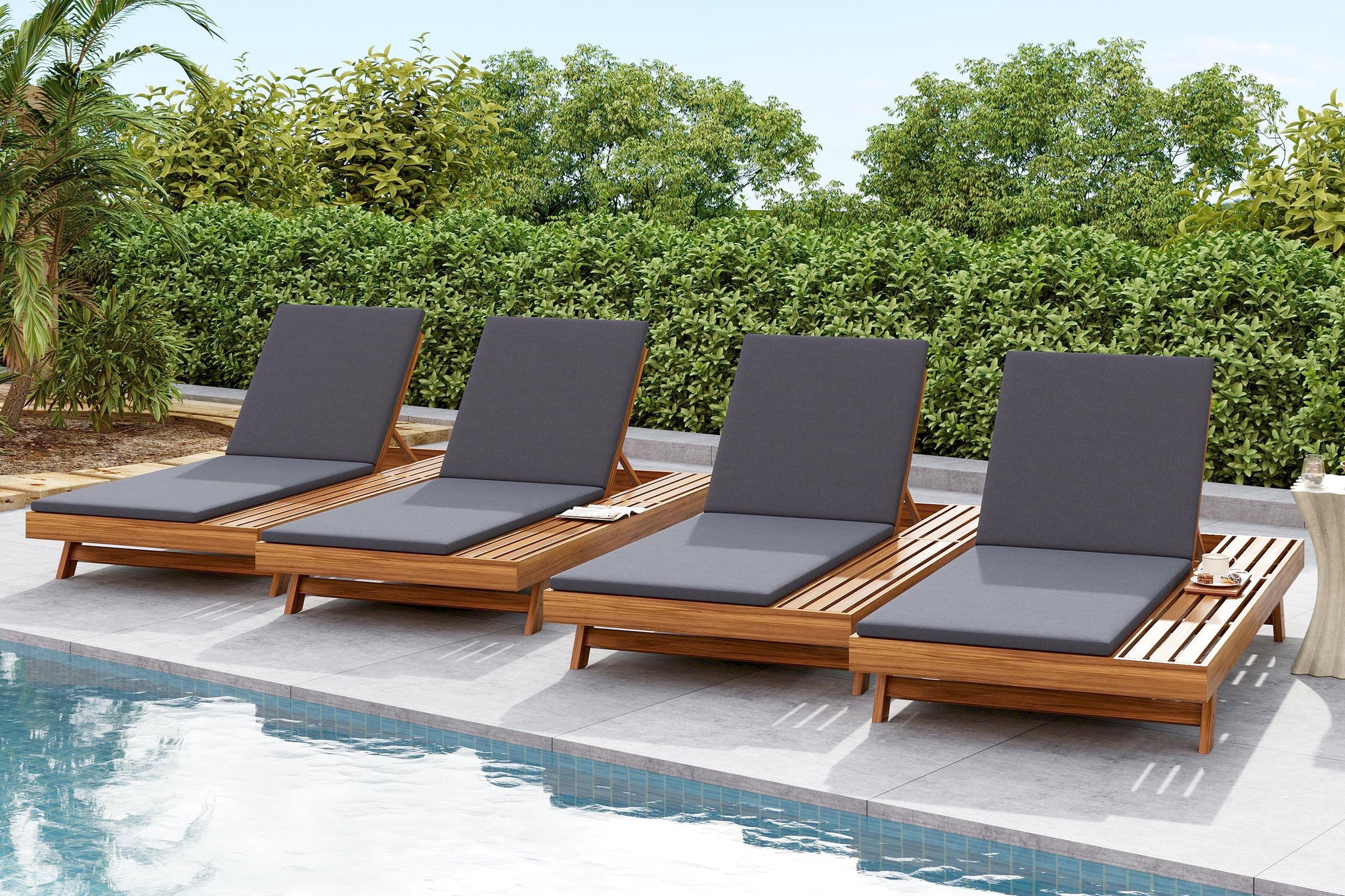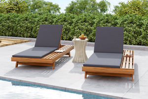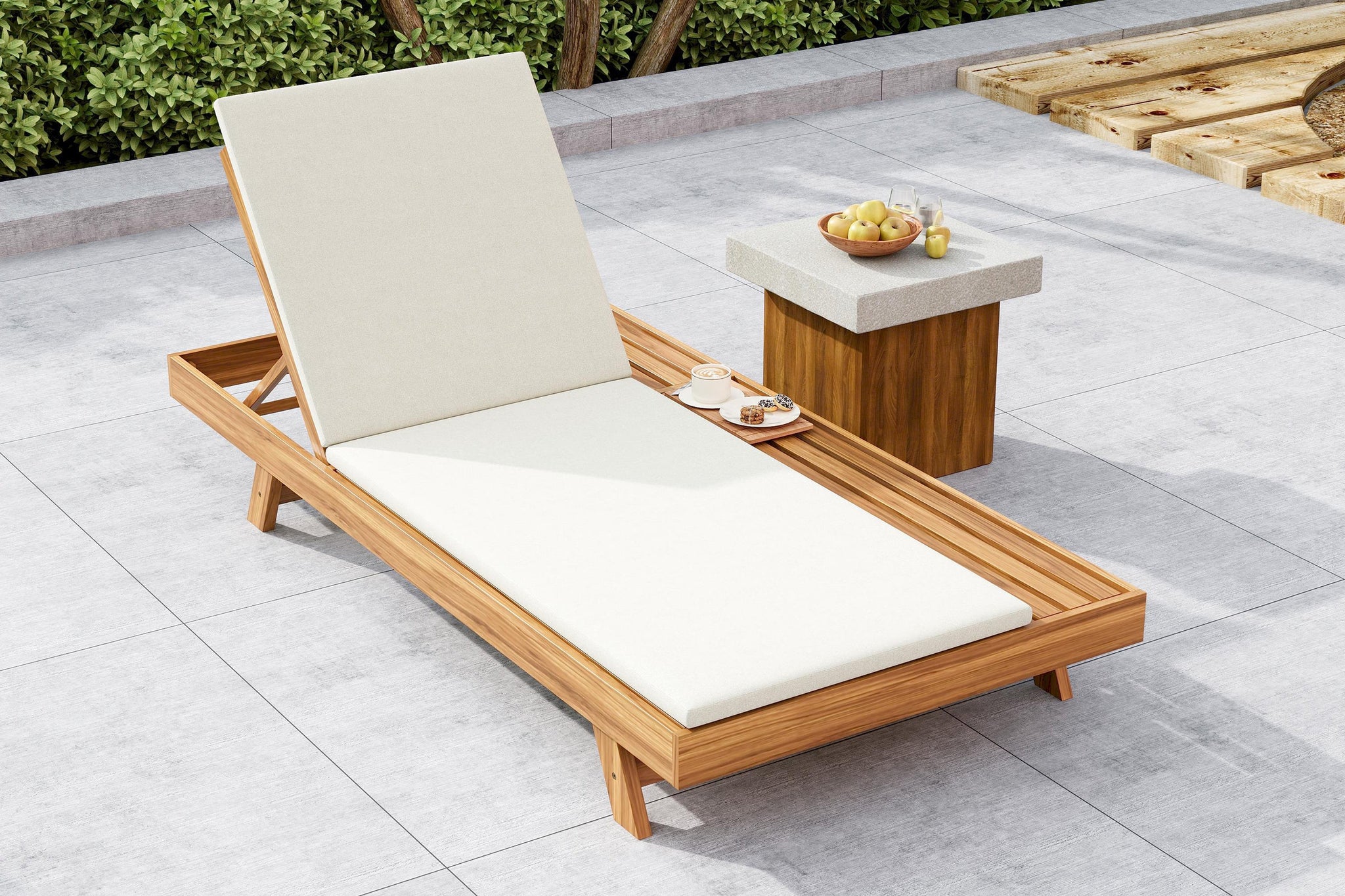 Switch to a solid acacia wood chaise lounge with teak finish. Adjustable recline, breathable slats, and a water-resistant cushion provide firm support and durable, weather-ready comfort. Perfect for poolside, patio, or deck relaxation any sunny day.