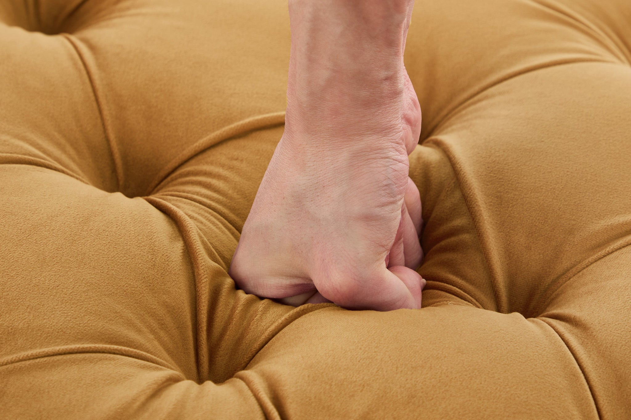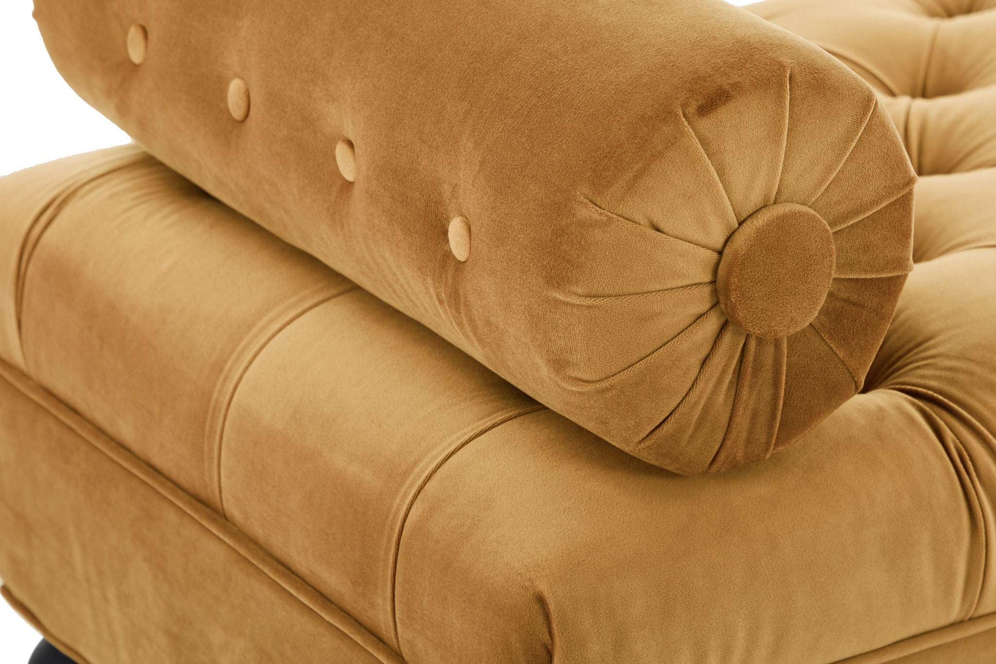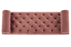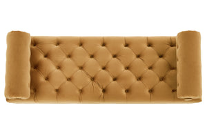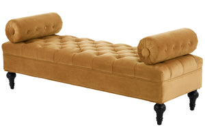 Velvet resists everyday dirt and can be spot-cleaned with a mild detergent and soft cloth. Regular gentle brushing keeps the pile looking fresh and preserves the bench’s refined appearance.