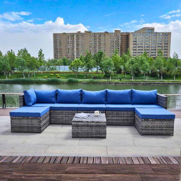 The all-weather wicker is UV and moisture resistant and the reinforced powder-coated frame resists rust. Together they provide season-to-season durability that reduces sagging and keeps the sectional looking good longer.