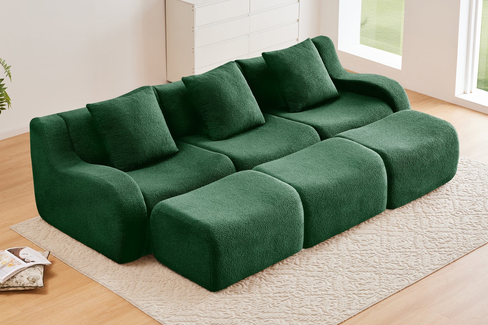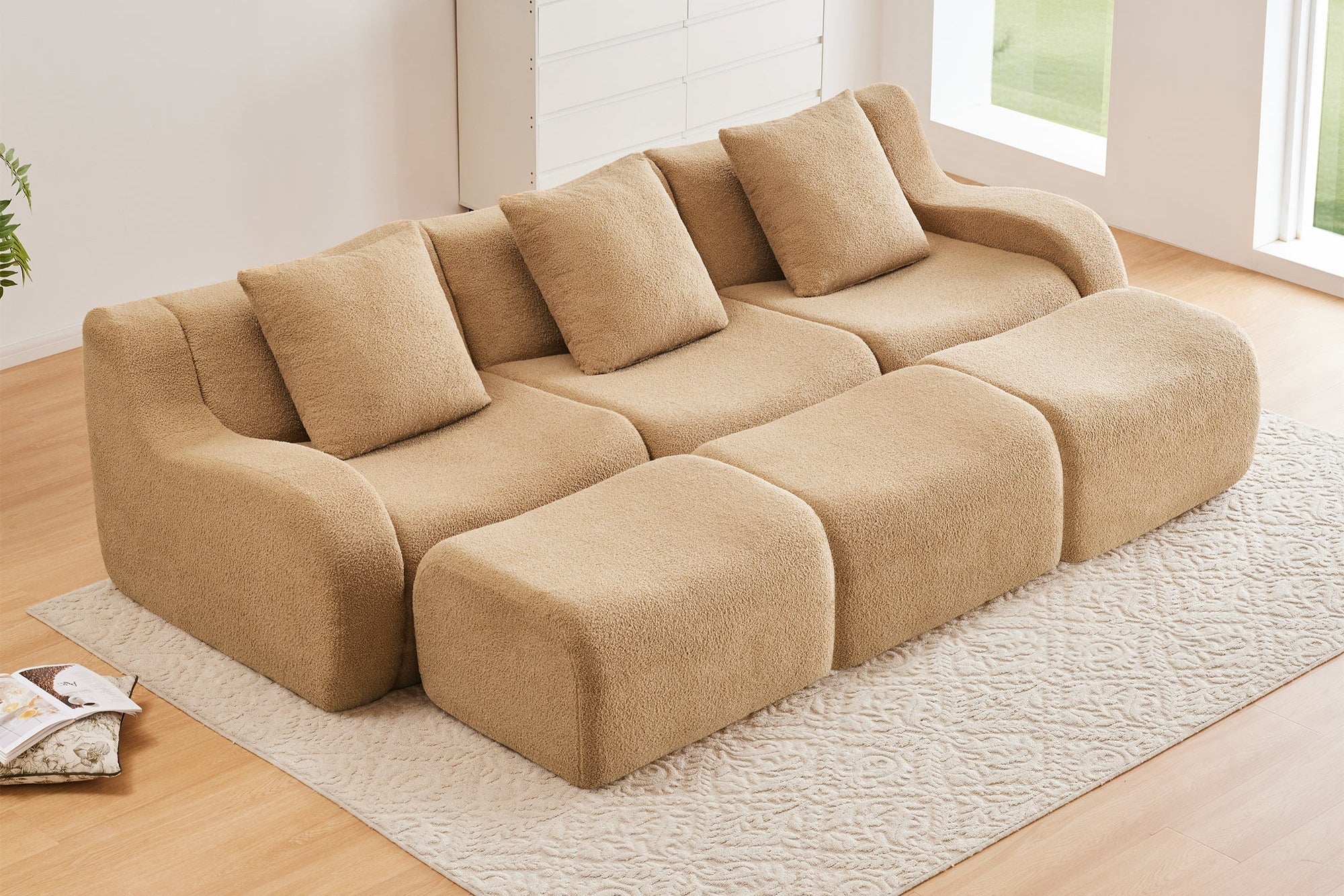 Experience the luxurious softness of teddy fabric that envelops you in comfort. The modular design adapts to any room, creating a personalized oasis. Sink into the sofa's embrace, providing a perfect escape from daily stresses, and discover the joy of unwinding at home.