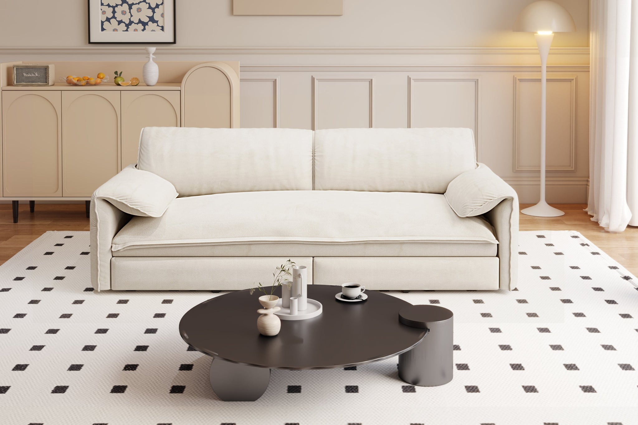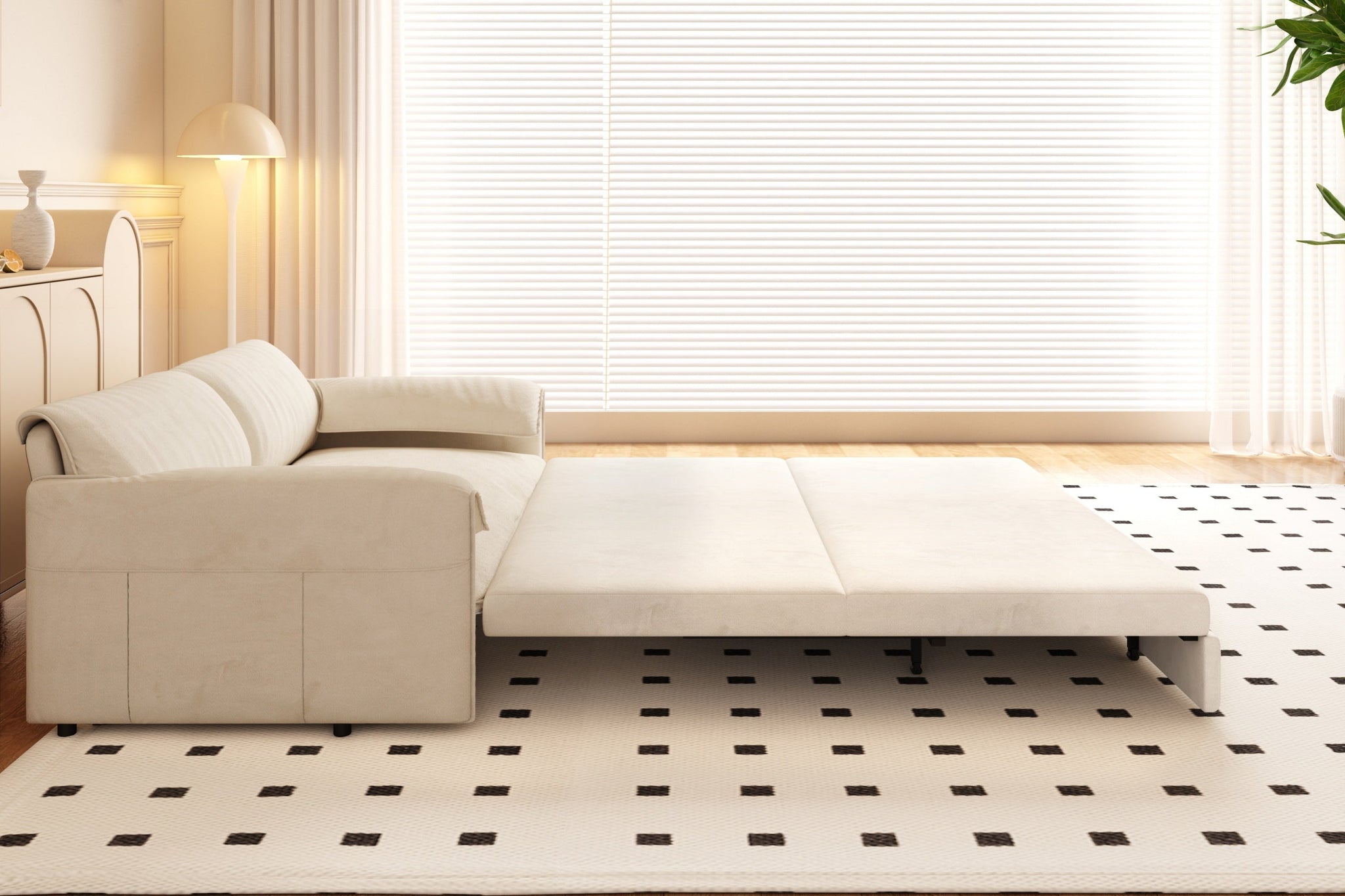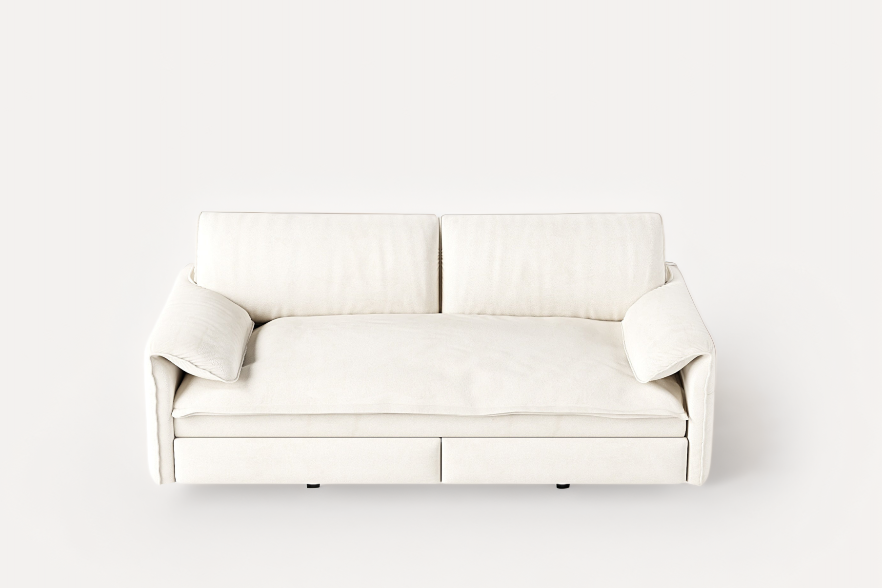 The RESTO Sleeper Sofa smoothly shifts from a sofa to a chaise or a Queen-size bed, adapting to your space needs.