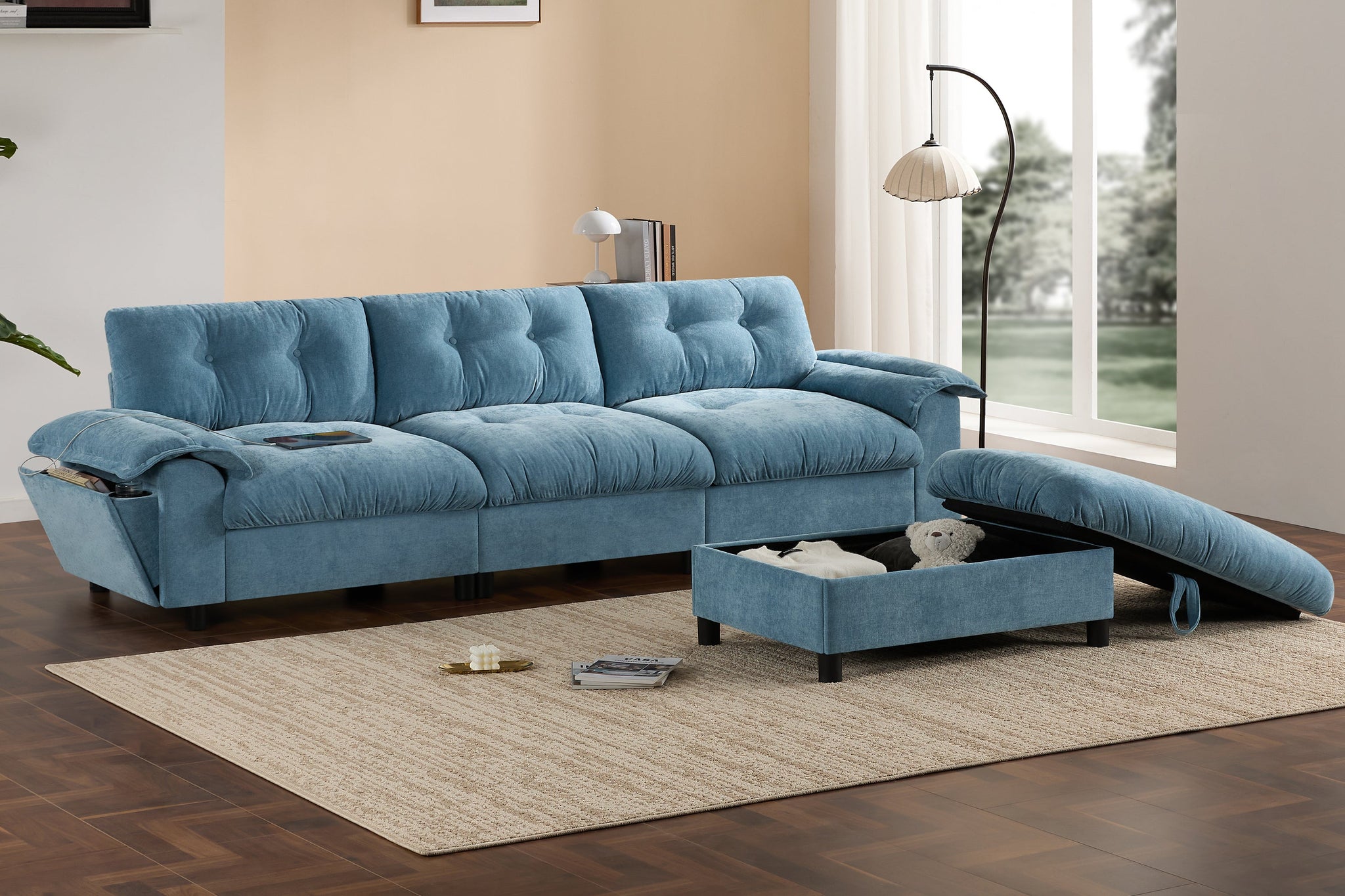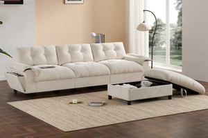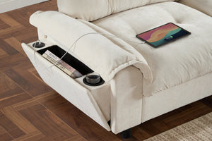 The BRlAR Sectional Sofa’s multifunctional armrest with built-in storage, a cup holder, and charging access—keeping books, devices, and essentials organized while adding convenient comfort at your side.