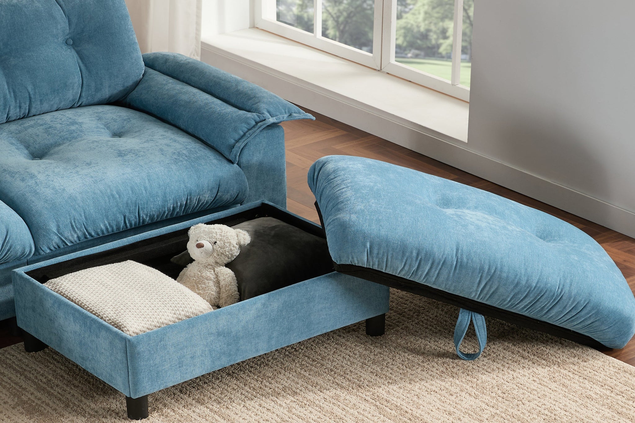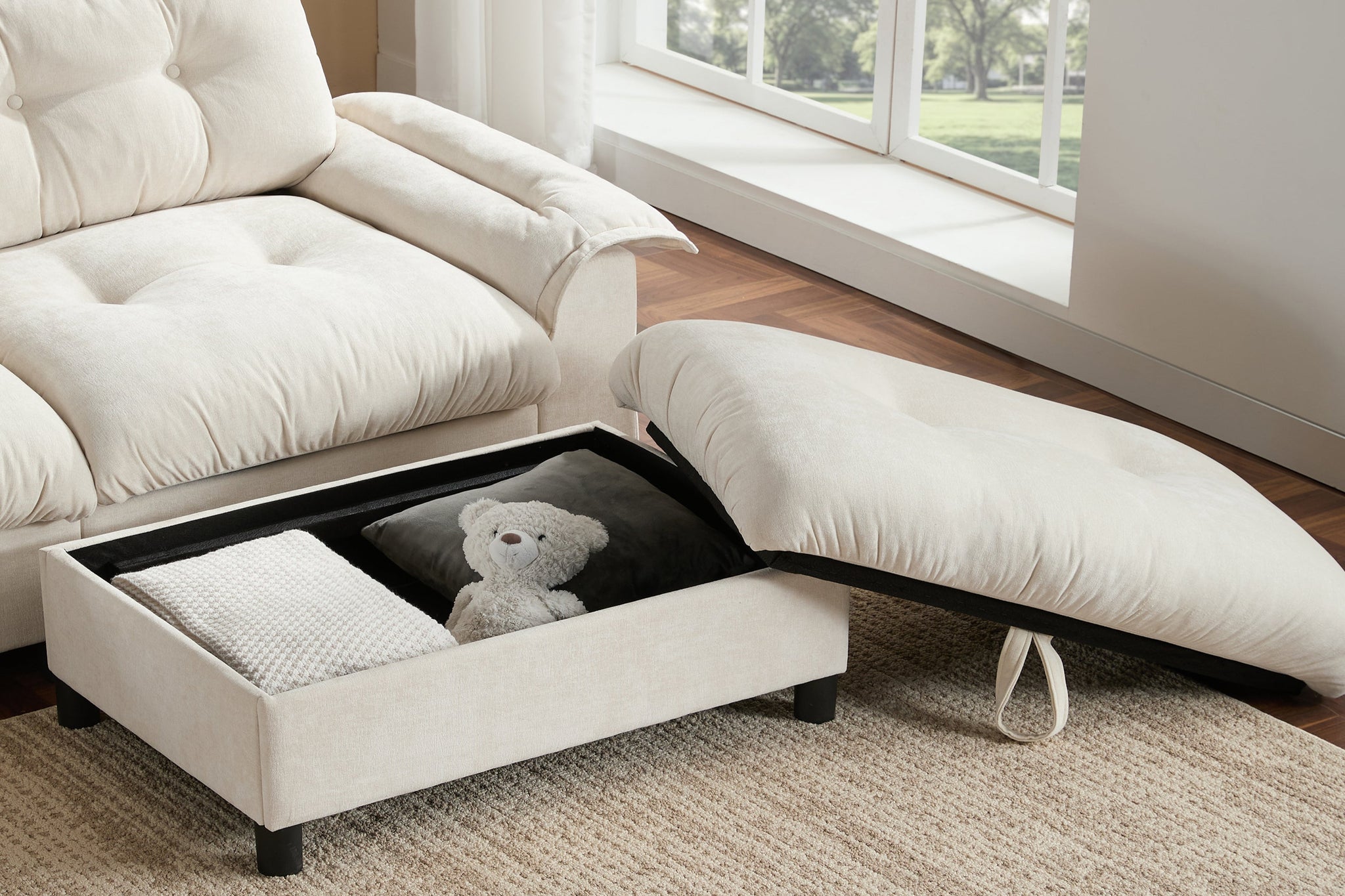 The ottoman features hidden storage that keeps blankets, toys, and everyday essentials neatly organized. Its simple, practical design helps maintain a clean, stylish, and clutter-free living space with ease.