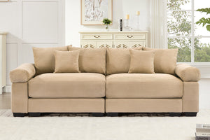 Relish the generous seating space that envelops you in warmth. The padded cushions offer plush support, perfect for unwinding after a long day. Whether reading a book or catching up on your favorite show, this sofa becomes your haven of relaxation.
