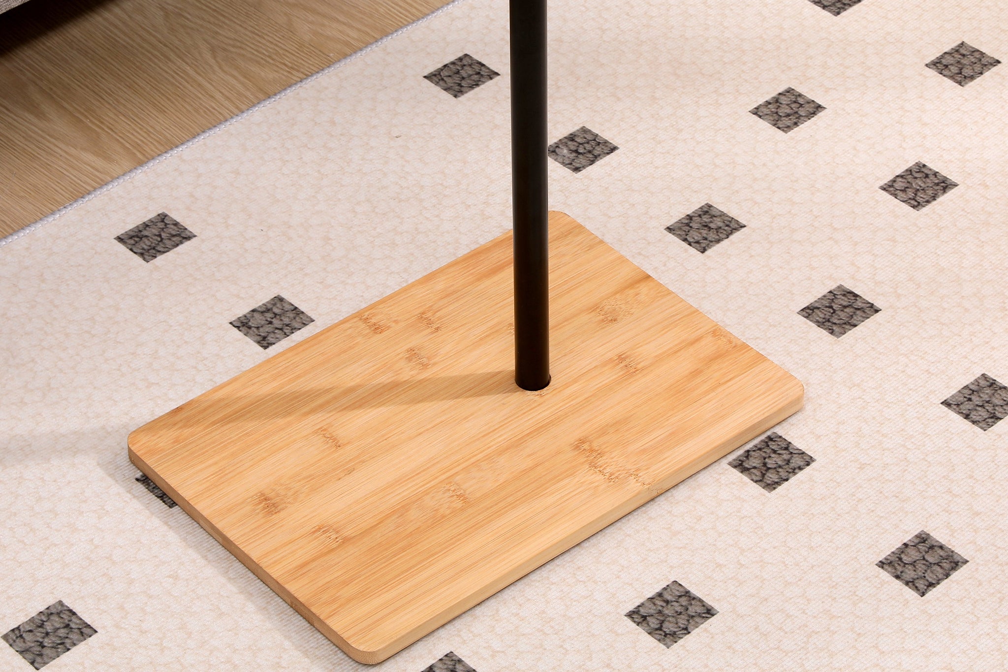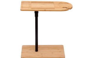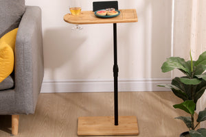 Lift the adjustable C-shaped bamboo table, rotate its 360° tray, and transform any small space into a convenient spot for snacks, work, or devices.